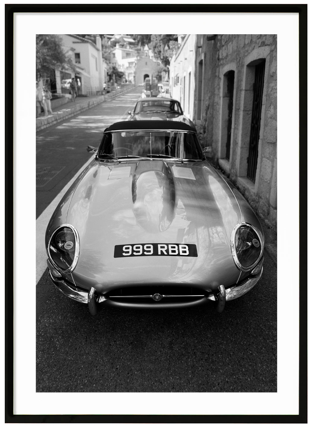the front of a Jaguar E-Type. Printed on the highest quality